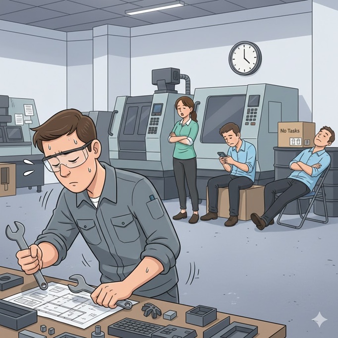 板金加工の現場でよく見られる光景ですが、これは非常に大きな損失(機会損失)を生んでいます。この状況を打破し、変化に強い組織を作るための鍵が「多能工化」です。